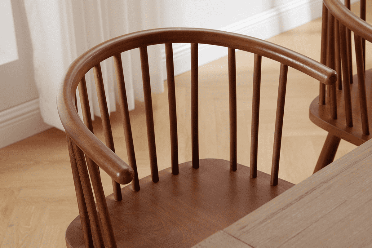 The Chairus Windsor Dining Chair boasts a classic Windsor-style design, characterized by its sleek, cylindrical rod backrest and simple yet refined construction. The elegant lines and minimalist form make it a versatile piece that complements various interior styles, from farmhouse to modern.