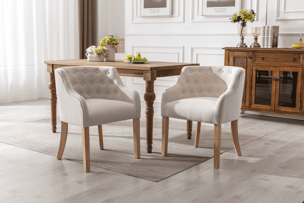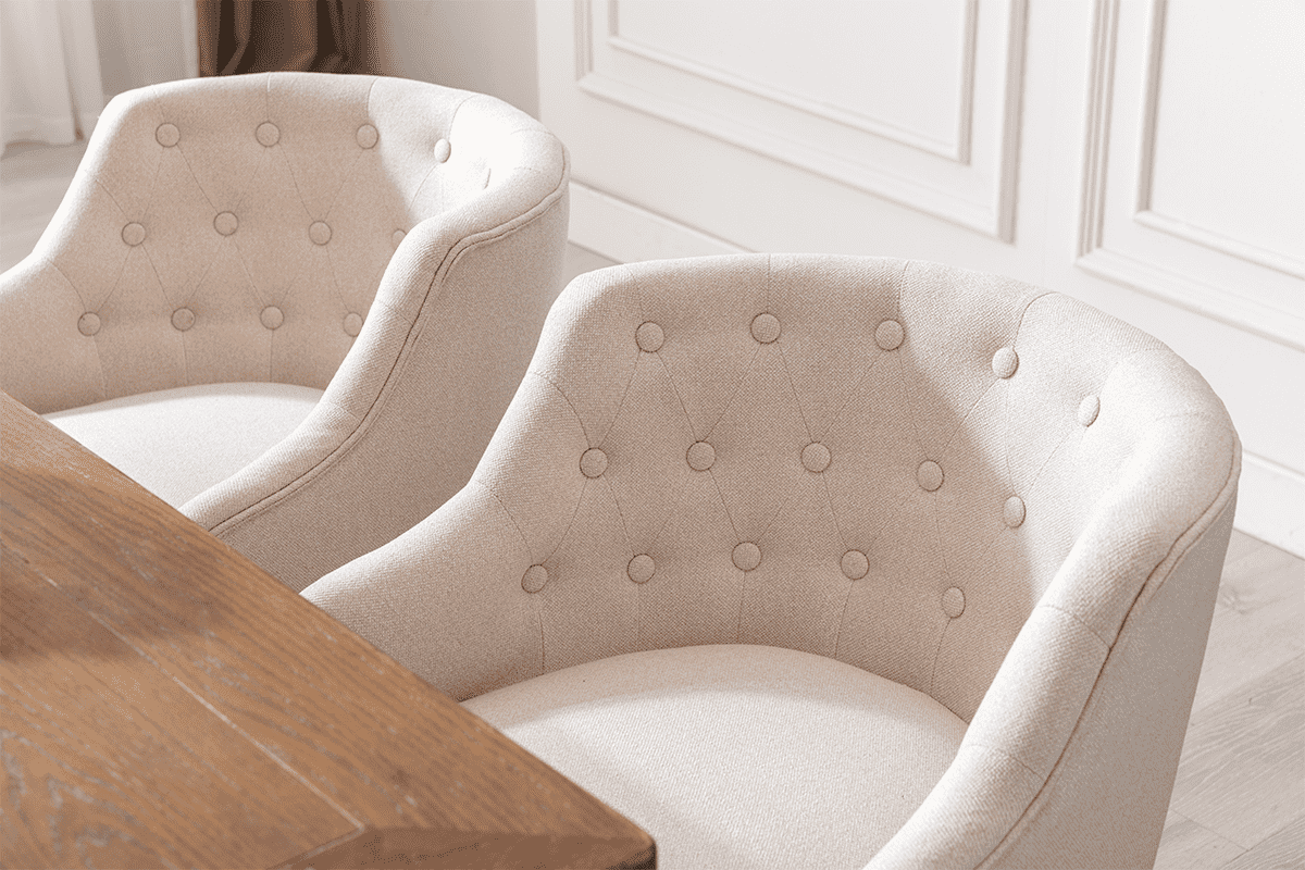 Elegant button tufting adds texture and sophistication to the overall look, making these chairs a focal point in any space.
