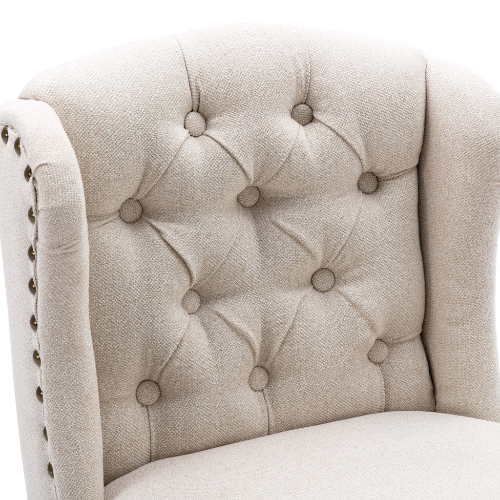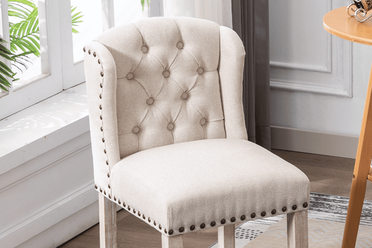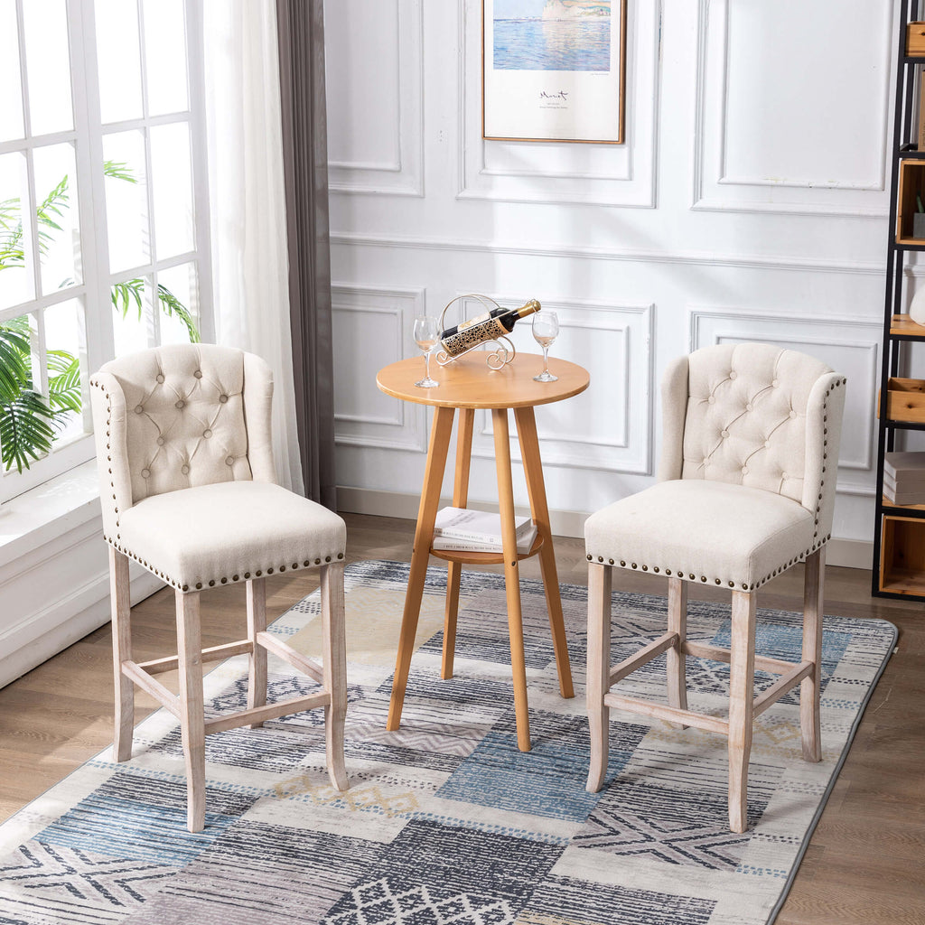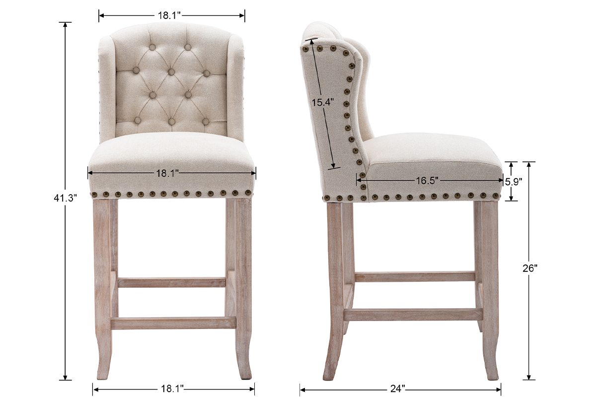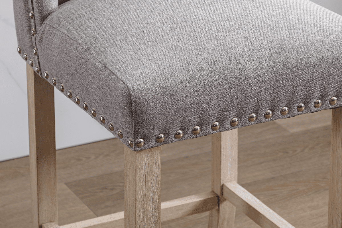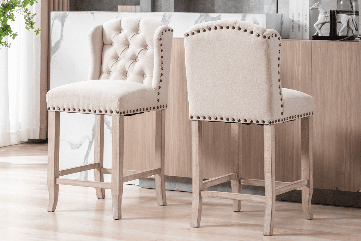 These bar stools feature an elegant tufted design that adds a touch of sophistication to any space. The button-tufted backrest not only enhances the visual appeal but also offers a classic look that fits seamlessly into both modern and traditional settings.