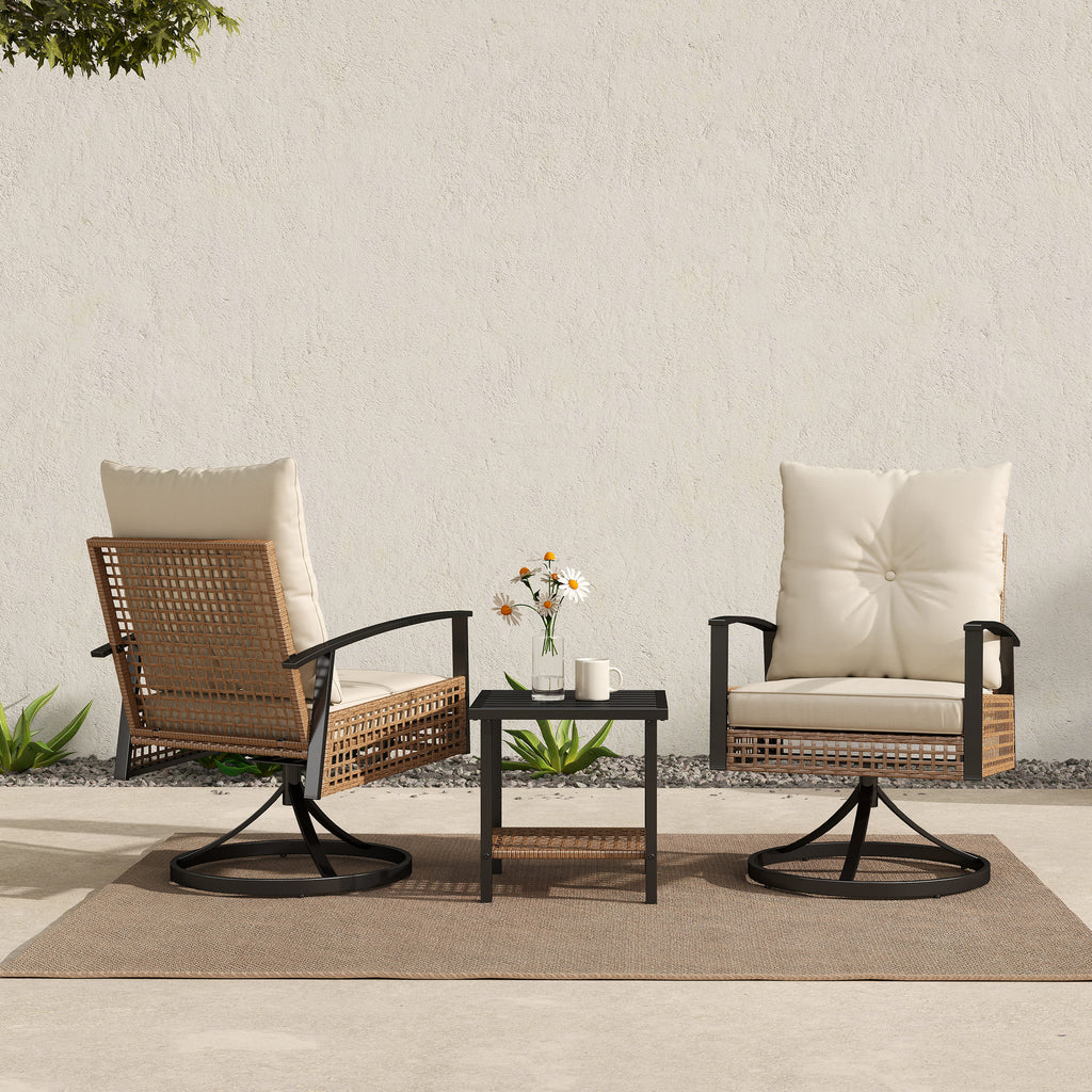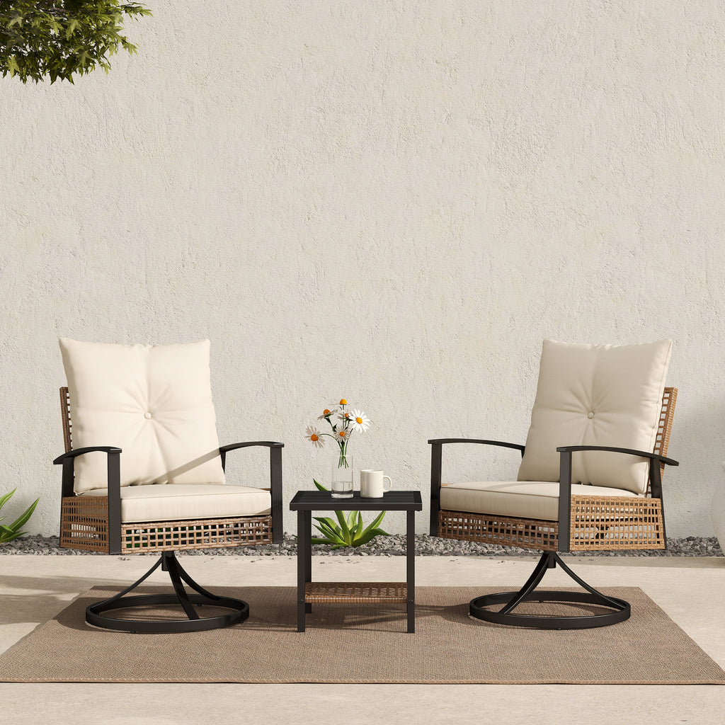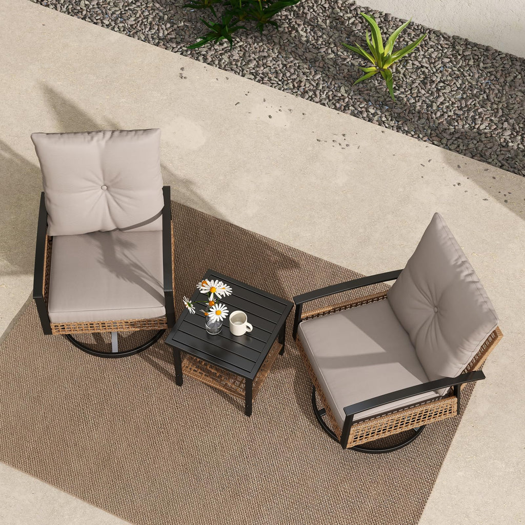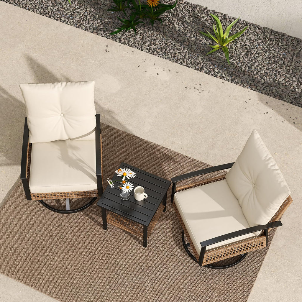 • 3-piece swivel bistro set combines nature and modern design, perfect for casual moments.
