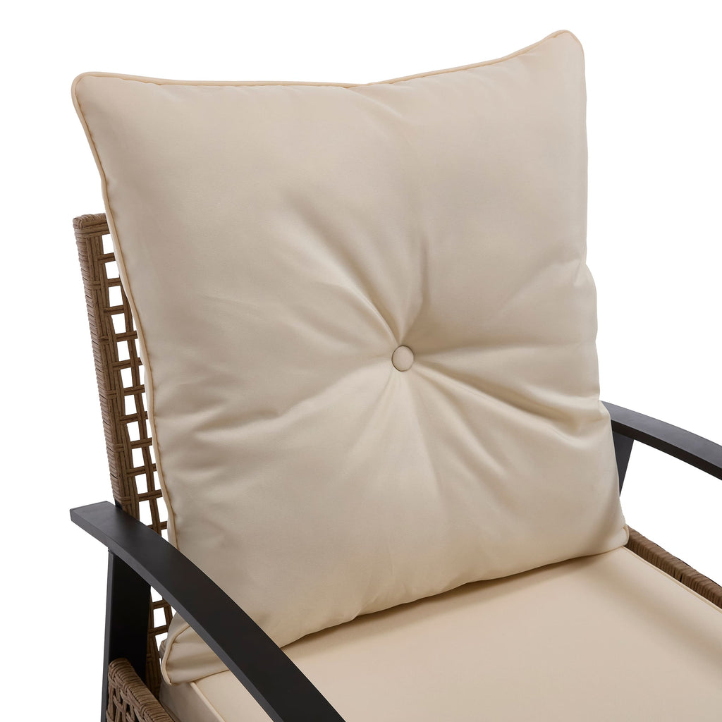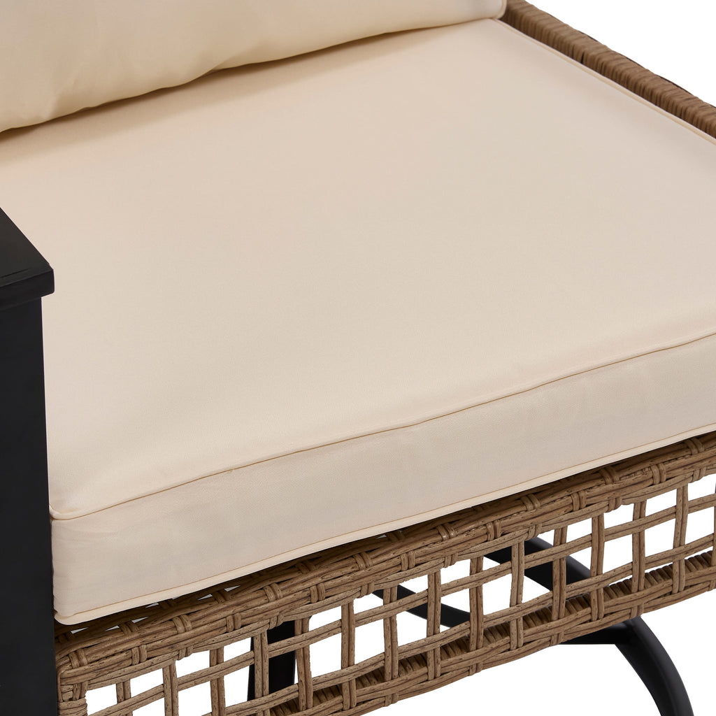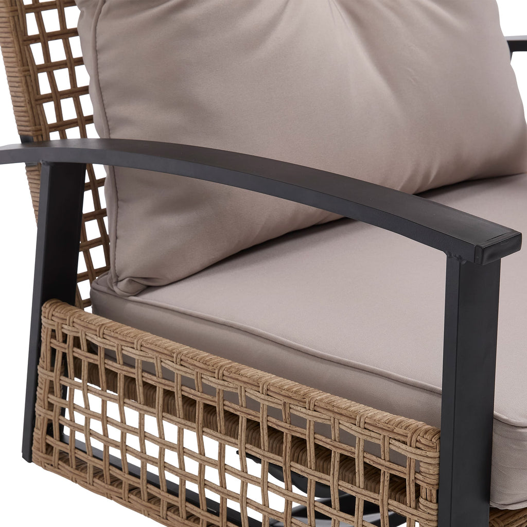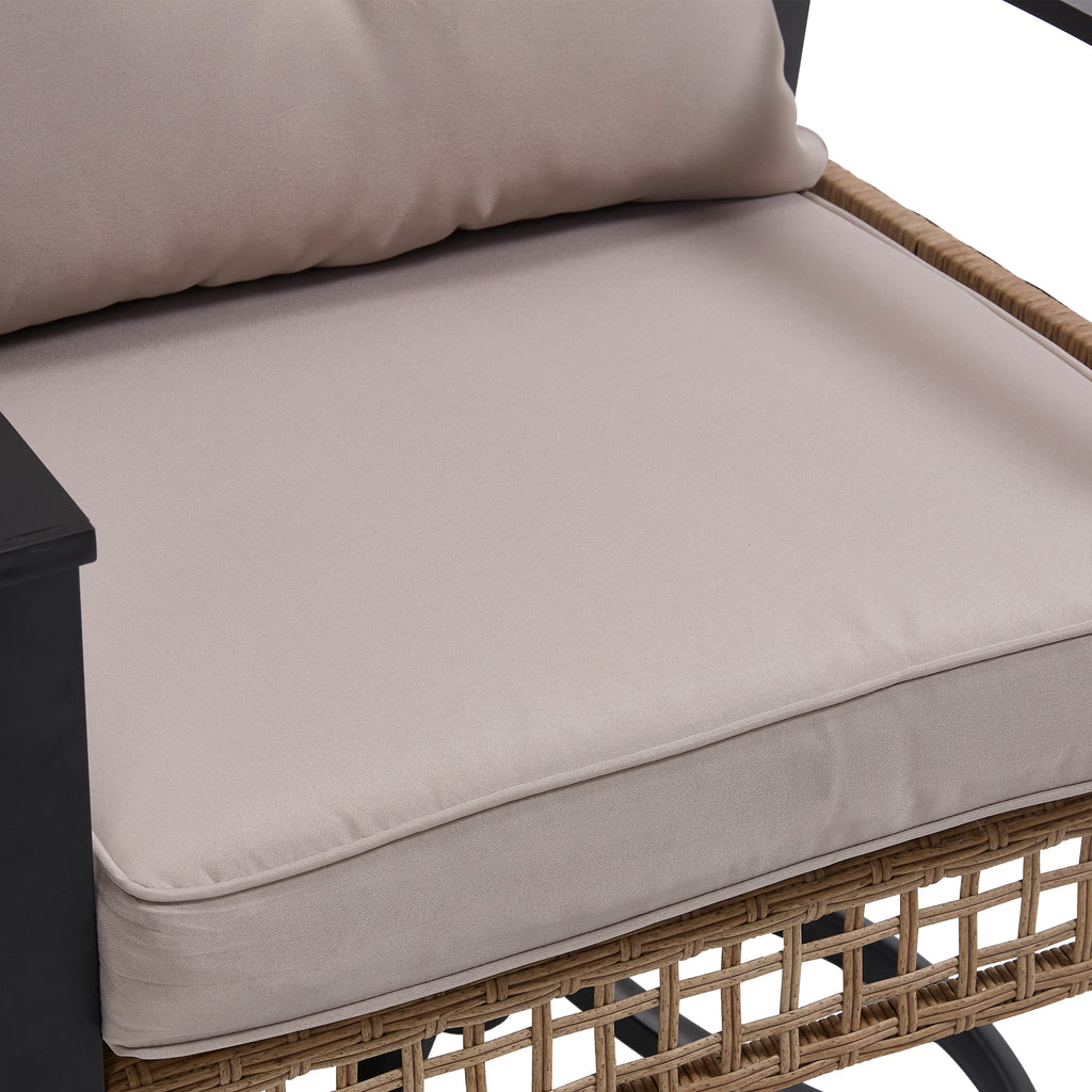 • Thick cushions, armrests, and 360° swivel rocking for relaxed seating.