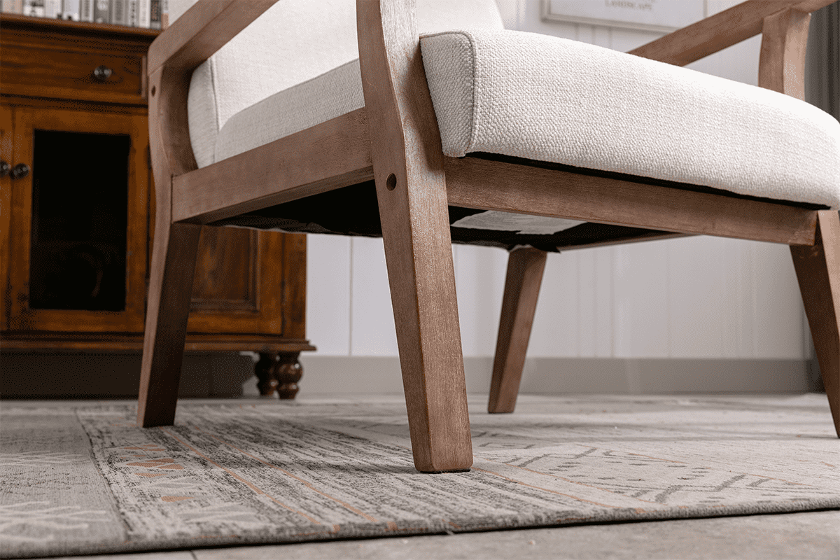 The frame of this leisure chair is crafted from solid rubberwood, known for its strength and reliability. This robust construction provides a stable and secure foundation, ensuring the armchair's longevity and sturdiness. The natural wood finish adds a warm, mid-century charm that enhances the overall aesthetic of the chair.