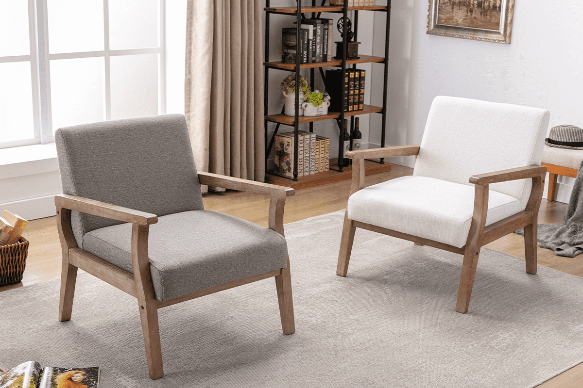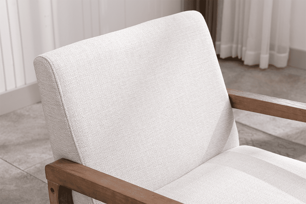 The Chairus Mid Century Armchair features a high-quality beige linen blend fabric for the cushion and backrest. This material is elegant, easy to clean, and durable, making it a practical choice for everyday use. The neutral color complements various interior styles, adding a touch of sophistication to any room.
