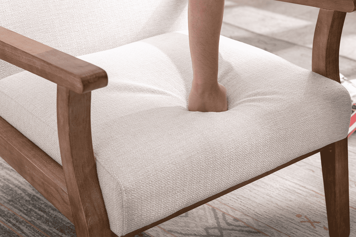 Both the backrest and seat cushion are filled with high-resilience foam, ensuring a soft and comfortable seating experience. The foam is designed to maintain its shape and plush feel even with frequent use, providing consistent support and comfort over time. This ensures that the armchair remains inviting and cozy for extended periods.
