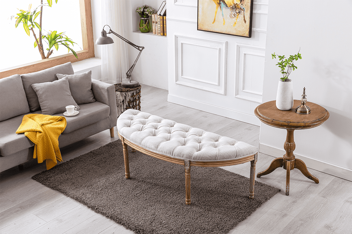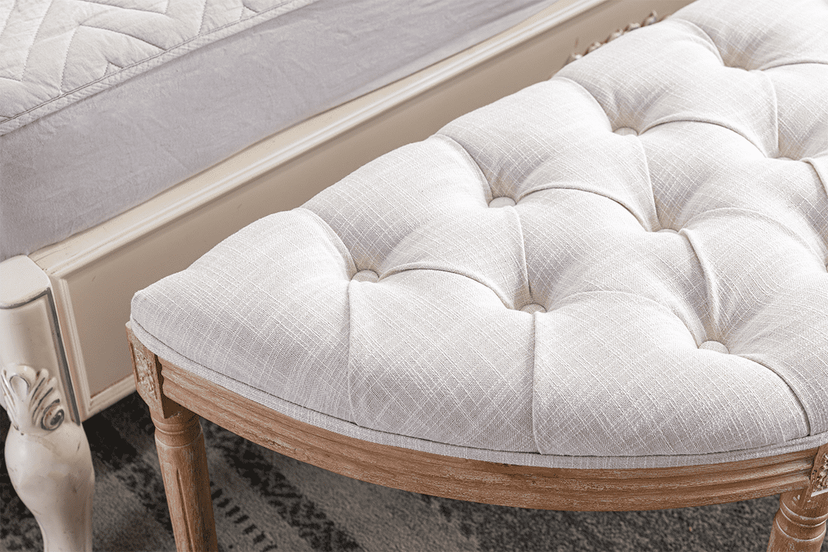 The bench complements a variety of spaces—perfect for entryways, bedrooms, or under windows. Its elegant design and practical use make it a stylish and versatile addition to any home.