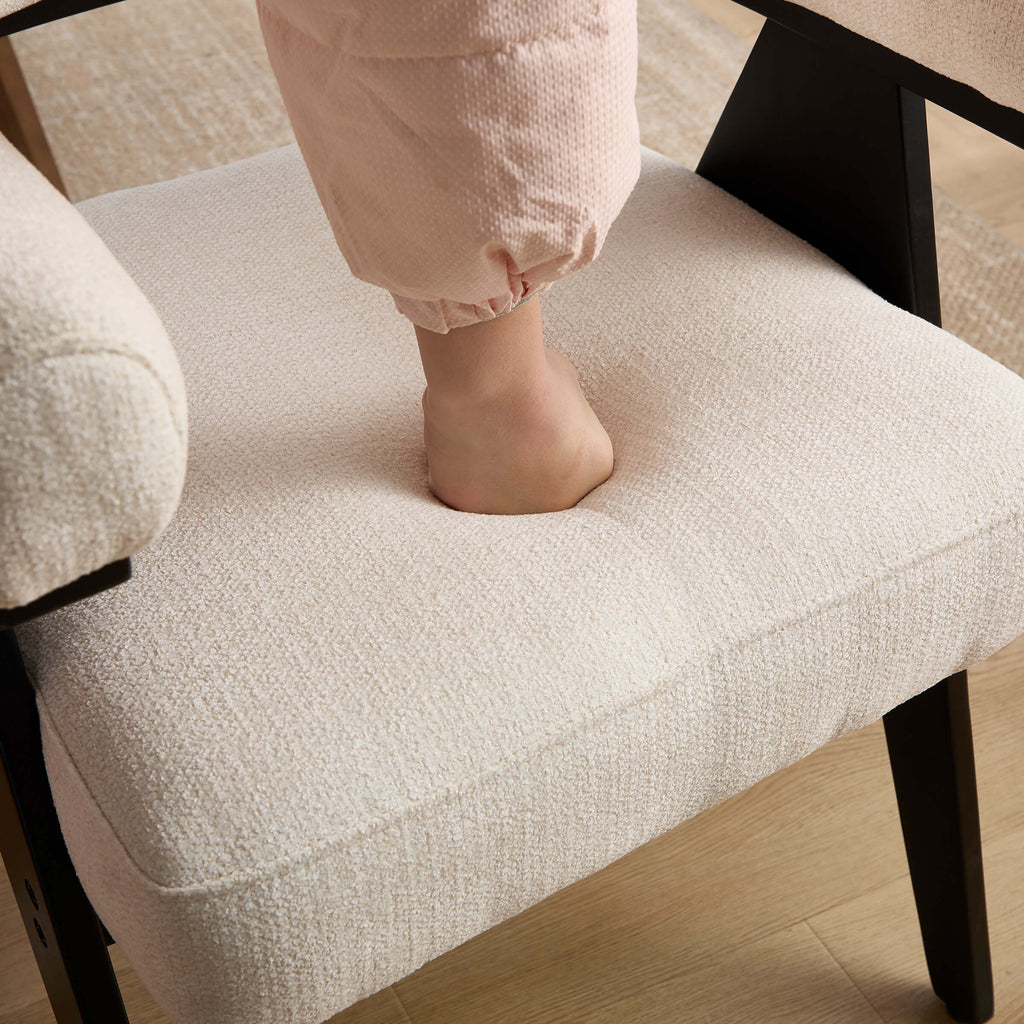 • The curved barrel back cradles your spine, reducing fatigue during 3-hour dinners or Zoom meetings.