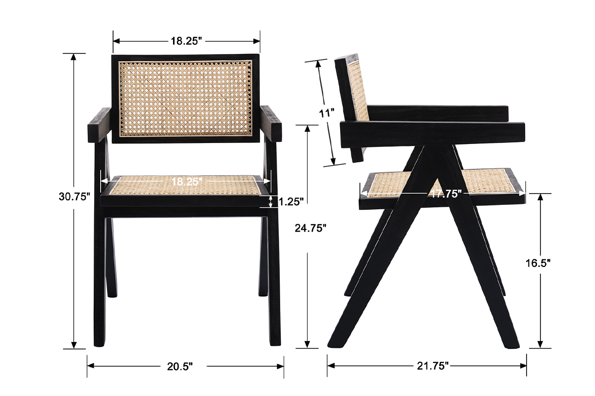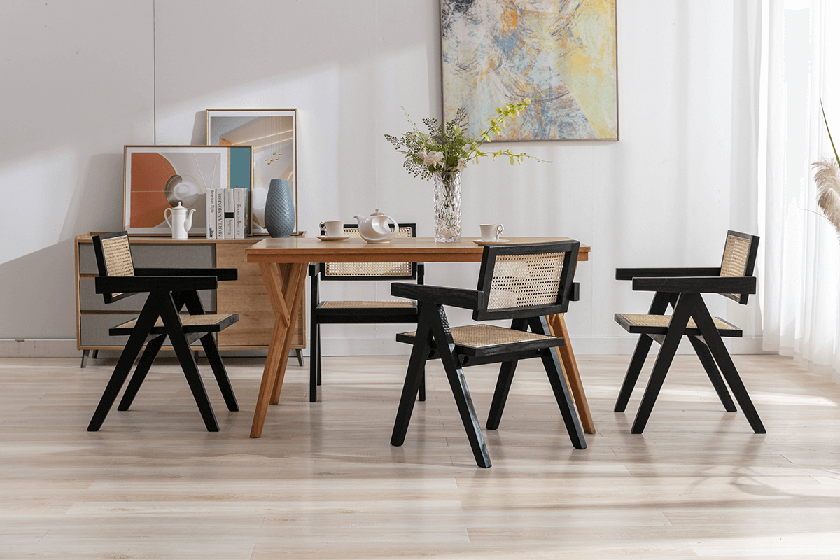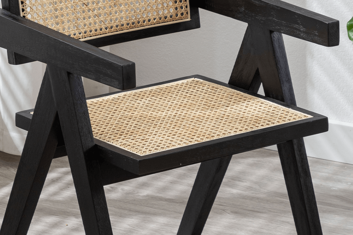Made from sustainable bamboo, the cane backrest is both environmentally friendly and long-lasting. Each chair features a handwoven bamboo cane backrest that not only adds a touch of natural beauty but also ensures breathability and comfort.