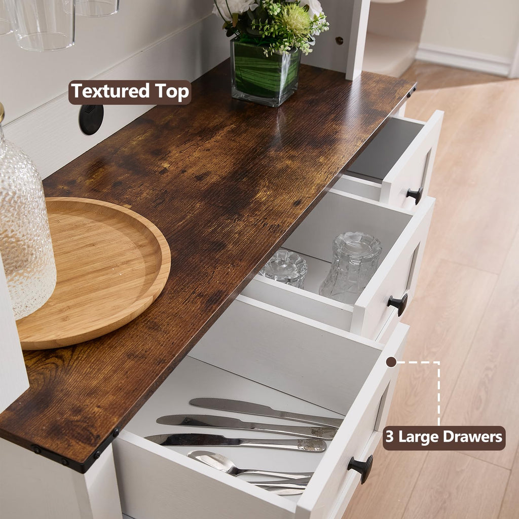 • Ample Storage: Buffet counter, upper cabinets, and drawers for organized storage.