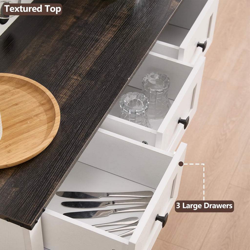 • Farmhouse Design: Sliding doors and rustic stripes, ideal for coffee, wine, or storage.