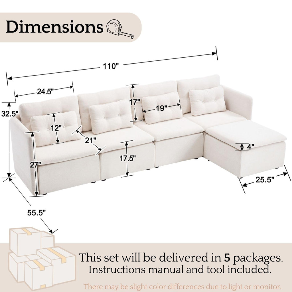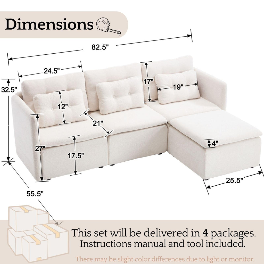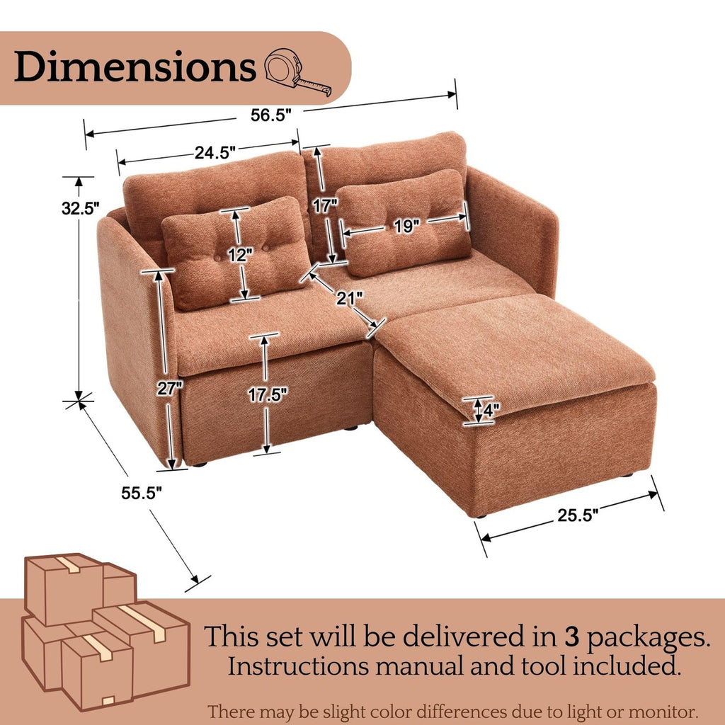 VESCASA Chenille 56.5" Modular Sectional Sofa with Waist Pillow - 90041SF