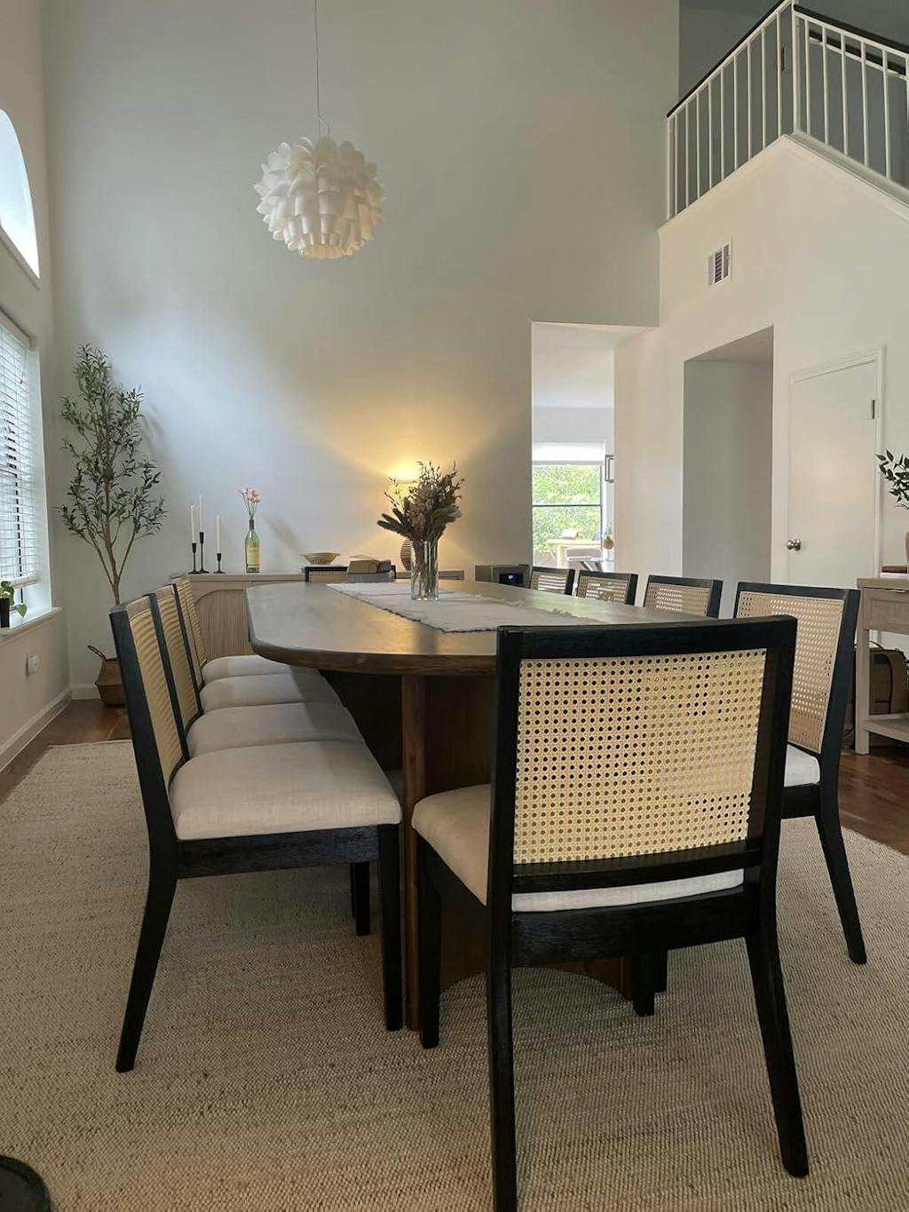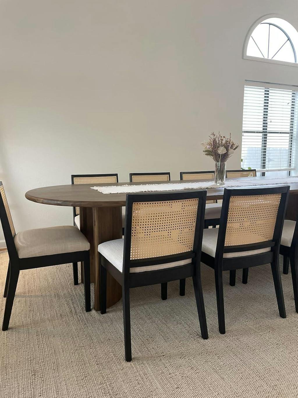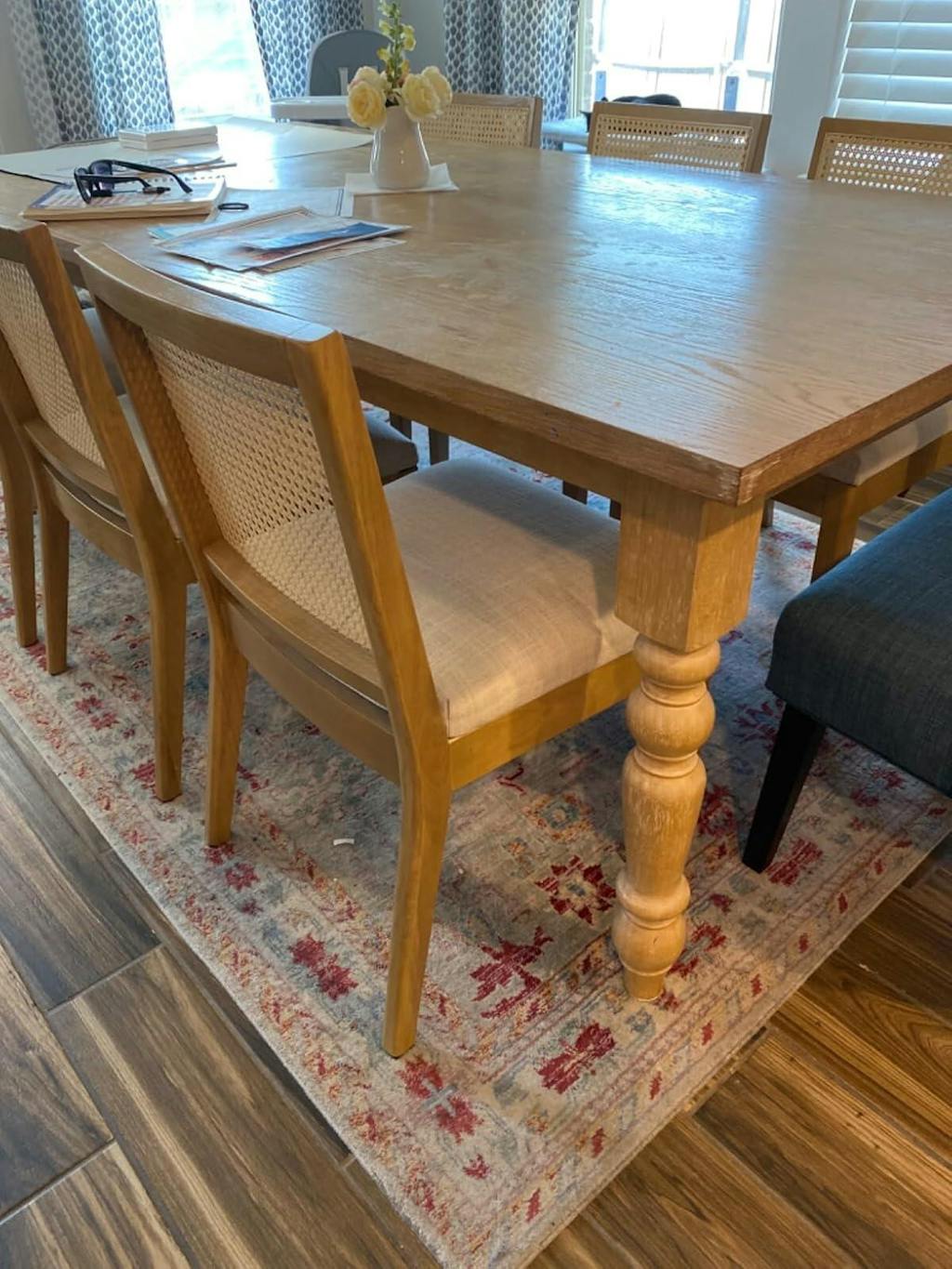 Square Rattan Back Linen Beige Dining Chairs Set of 2 - 1932DC