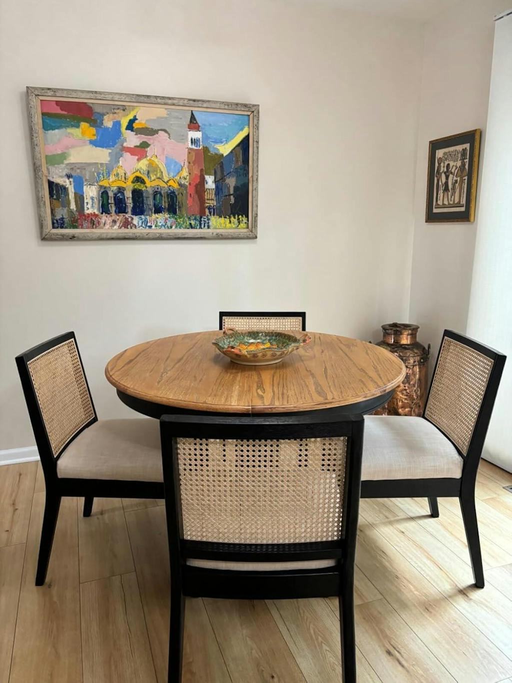 • 4 solid rubberwood legs, each leg has a footpad to protect your floors.